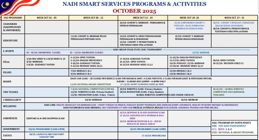 ✨Jadual aktiviti NADI Tabuan Desa bagi bulan Oktober 2025✨