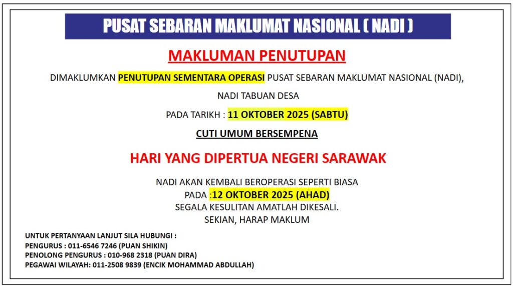 📢Notis Penutupan Sementara: Hari Yang DiPertua Negeri Sarawak🎂