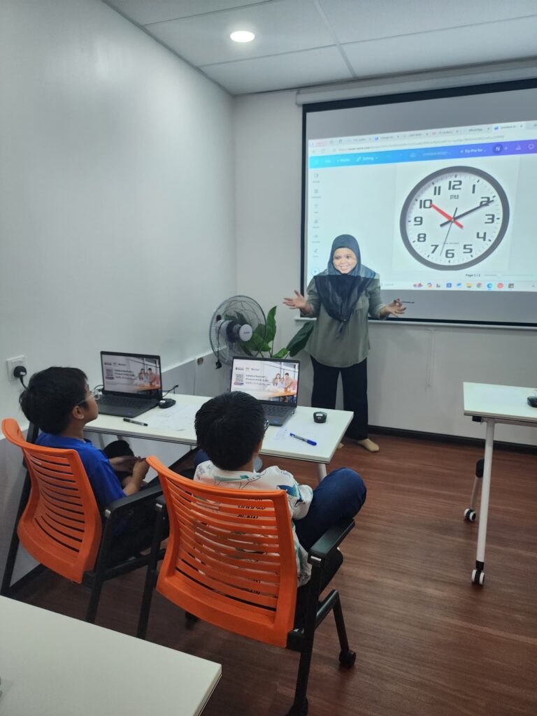 Selain memperkukuh kemahiran membaca jam, aktiviti ini juga mengasah keupayaan matematik mereka dengan cara yang lebih praktikal dan interaktif. Dengan bimbingan tenaga pengajar, peserta dapat berlatih membaca waktu dengan keyakinan serta memahami kepentingan pengurusan masa dalam kehidupan seharian.